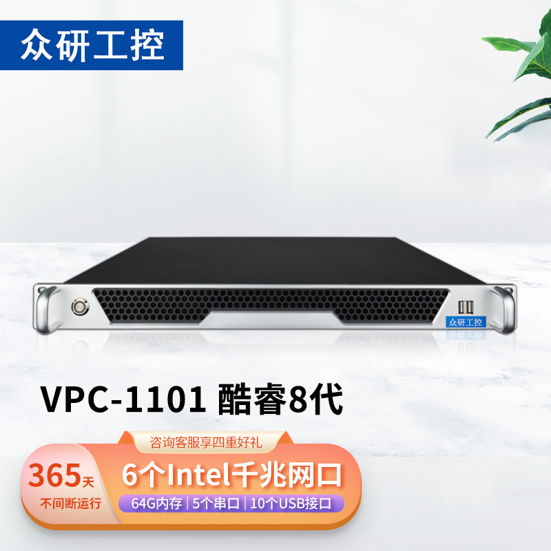 众研工控机 1U上架式 型号:VPC-1101 【酷睿8代】六千兆网口