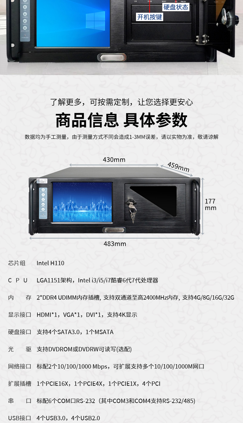 众研工控机 4U一体式 带屏幕 型号:ACP-4001 【酷睿7代】