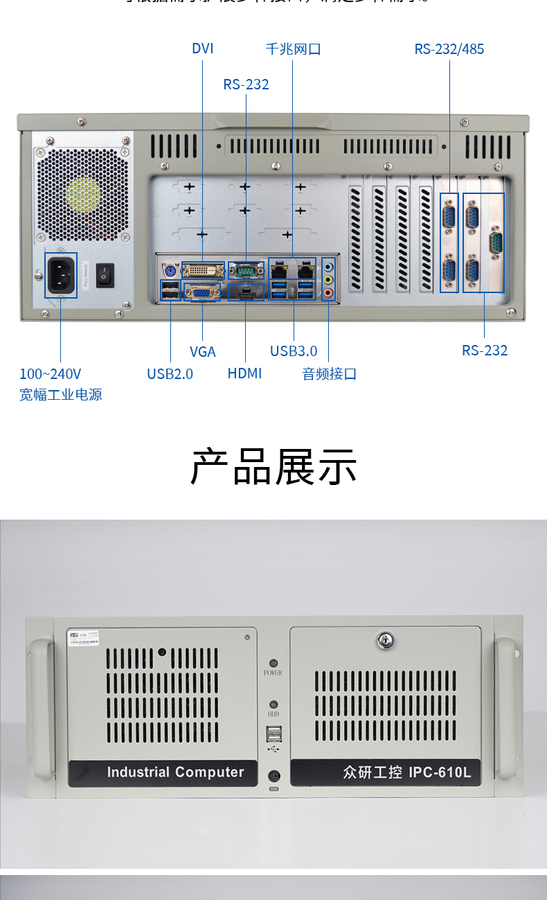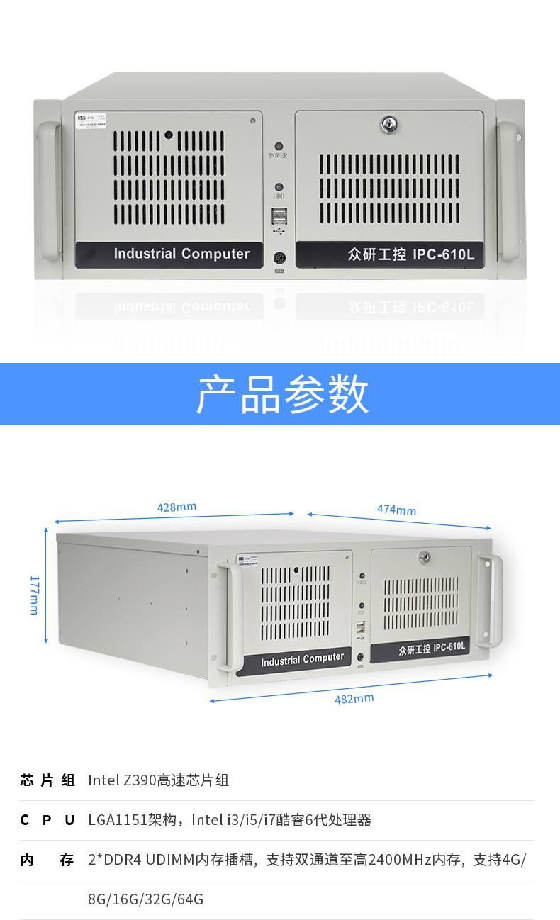 众研工控机 4U上架式 型号:IPC-610L 【酷睿6代】